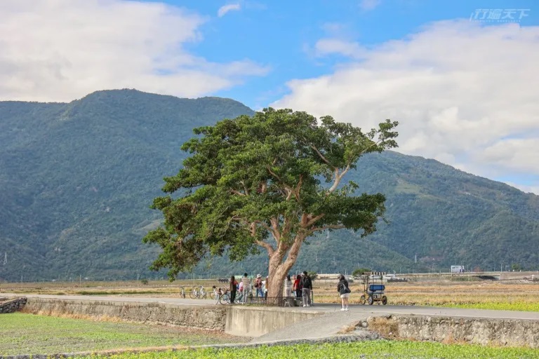 午餐後,由池上往南行,可改走197縣道和東9線,收藏大坡池、伯朗大道、奉茶樹、天堂路之美,順道拜訪池上穀倉藝術館、稻米原鄉館、多力米故事館等知性景點。依偎在中央山脈與海岸山脈之間的197縣道沿途,是水保署台東分署推動的《漂鳥197–縱谷大地藝術季》展場,大型裝置藝術遍布池上、關山、鹿野等地,是攝影藝術愛好者必遊之路;東9線的起點則在池上外環道北邊,繞行大坡池東側南行後,可以接回197縣道,由兩條道路延伸的浮圳環線自行車道,全長約5.8公里,途經伯朗大道、奉茶樹(金城武樹)、大水車、浮圳大觀亭等景點,隨手一拍都是風景明信片。