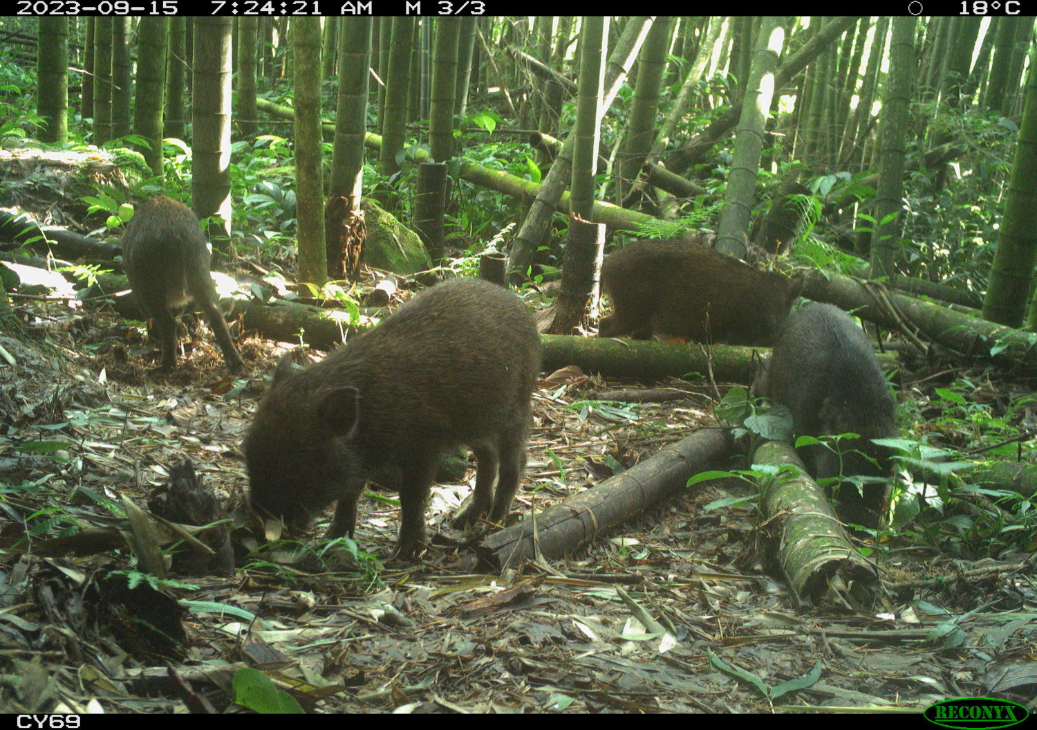 山林中的野生動物採用紅外線自動相機監測,可以長時間運作日夜拍攝,記錄動物多元的自然活動情況,例如水鹿洗泥巴浴及晚上坐臥休息、黃喉貂飲水、野豬群覓食等,也有好奇的山羌發現了相機凝視鏡頭的畫面。除了哺乳動物之外,相機也能捕捉拍攝到不少鳥類,以藍腹鷴較為常見,較特別的是也捕捉到一張黑枕藍鶲振翅飛翔的畫面。