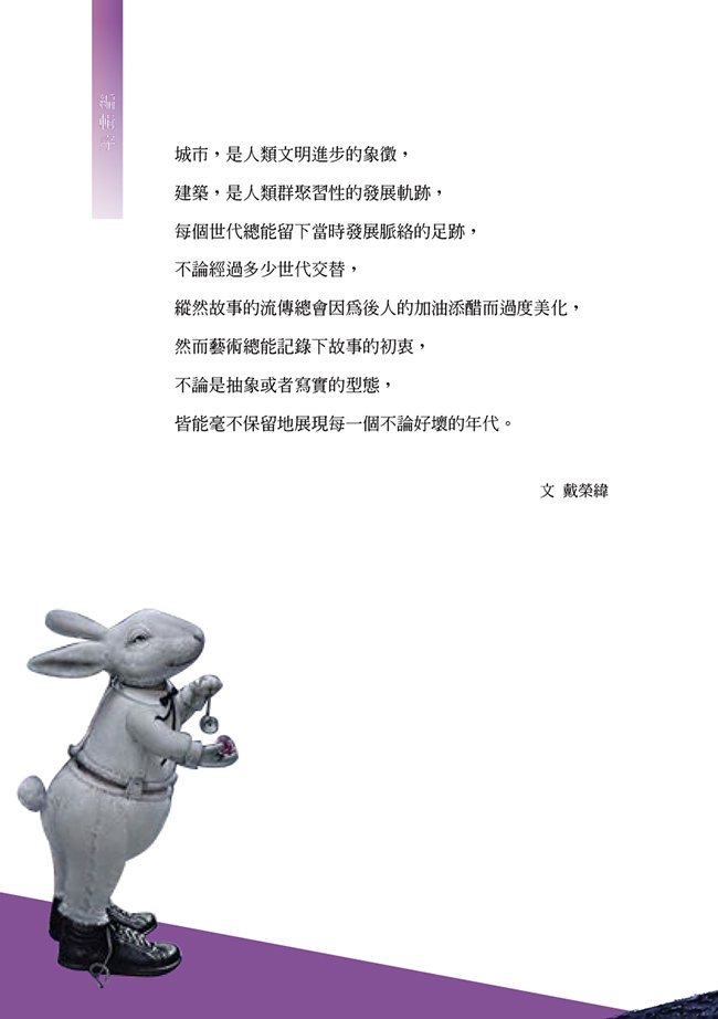 城市,是人類文明進步的象徵,建築,是人類群聚習性的發展軌跡,每個世代總能留下當時發展脈絡的足跡,不論經過多少世代交替,縱然故事的流傳總會因為後人的加油添醋而過度美化,然而藝術總能記錄下不論故事的初衷,不論是抽象或者寫實的型態,皆能毫不保留地展現每一個不論好壞的年代。