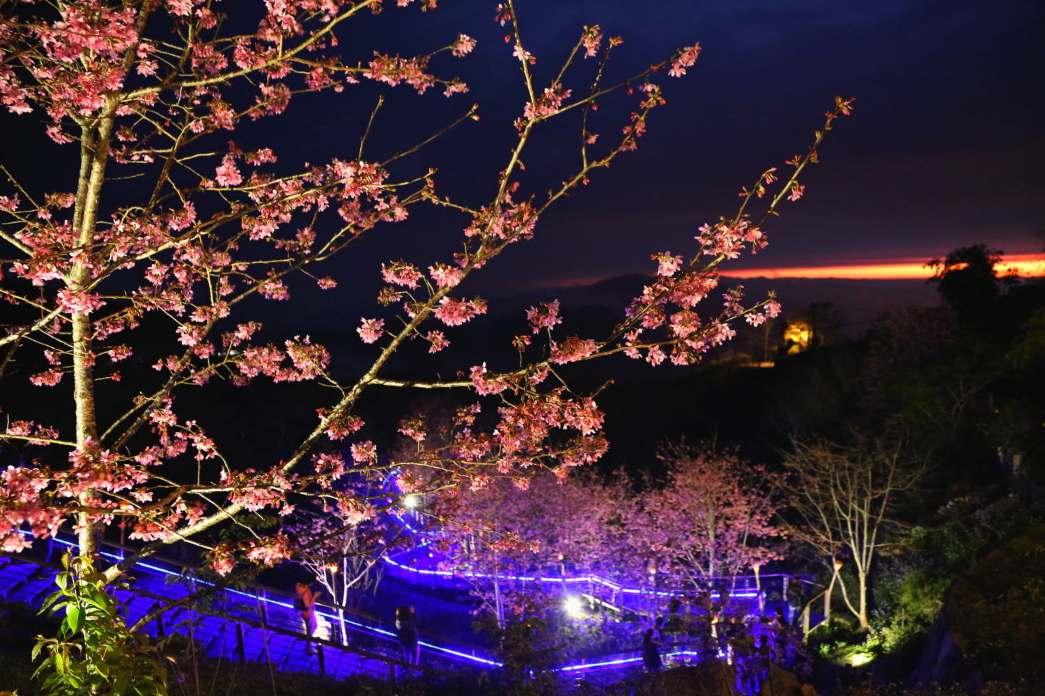 〔News586/記者呂明鴻報導〕大阿里山山區從元月起進入櫻花大爆發期,各品種櫻花隨著時序接力綻放,以櫻花馳名的竹崎鄉石棹社區發展協會,2/29日起至3/4日一連5天晚上將在石棹櫻之道舉辦春櫻夜-遇見夜琉璃活動,在夜琉璃和昭和櫻花步道下,讓遊客體驗茶旅達人精心佈展的特色茶席;夜櫻茶席每天晚上分兩個梯次舉行,採預約制,有興趣的遊客可預約網部掃描QRCODE報名。