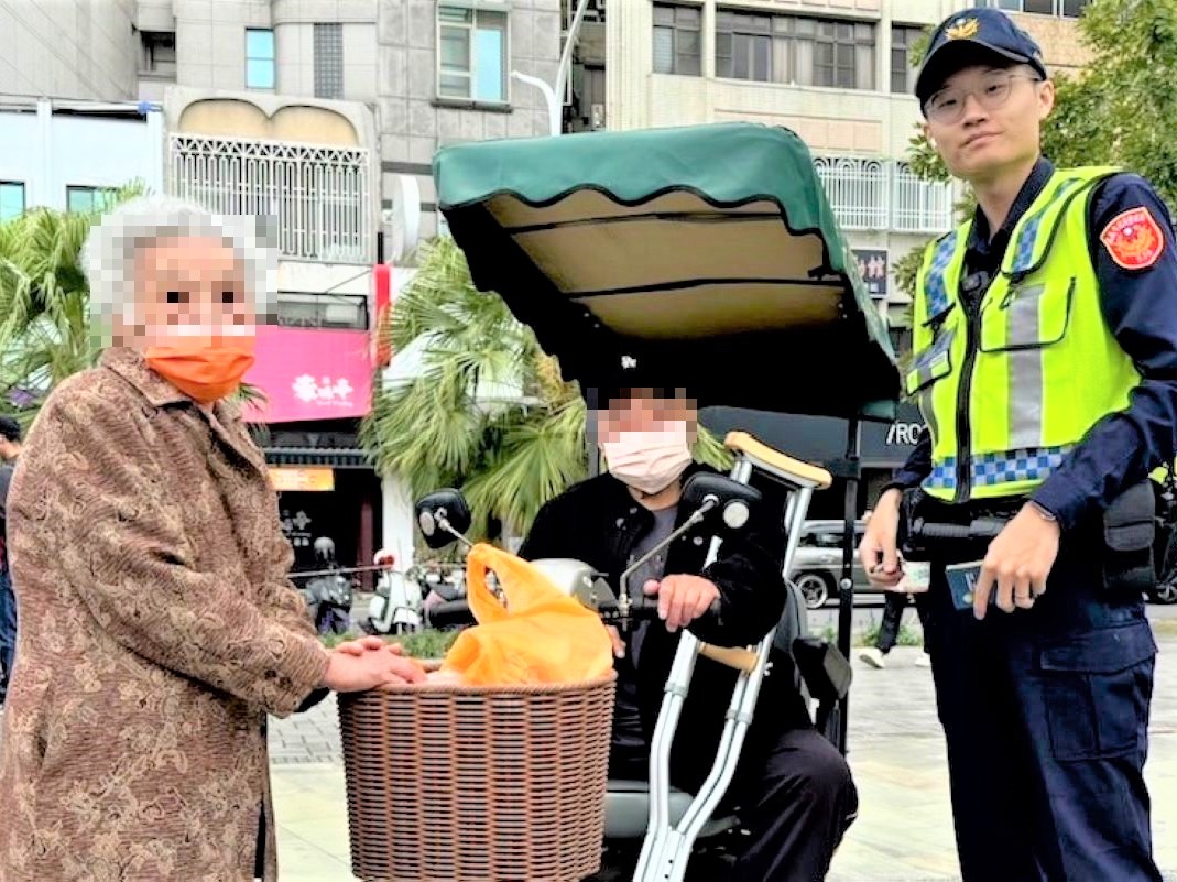 尋找一陣子後,警方在攤位的轉彎處發現騎乘輔助電動車的老翁,警方立即上前出示老婦人照片並詢問是否為其家人,老翁頻頻點頭激動的說「我找她好久」,警方立即帶同老翁至公園內與老婦人相聚,老翁激動的說其妻因年紀增長,記憶力逐漸退化,平日都有家人陪伴在身邊,惟今日早上外出逛街一時疏忽而走失,所幸有警方熱心協助,才能讓老婦人順利找到家人,最後老夫妻兩人帶著微笑繼續逛年貨大街。