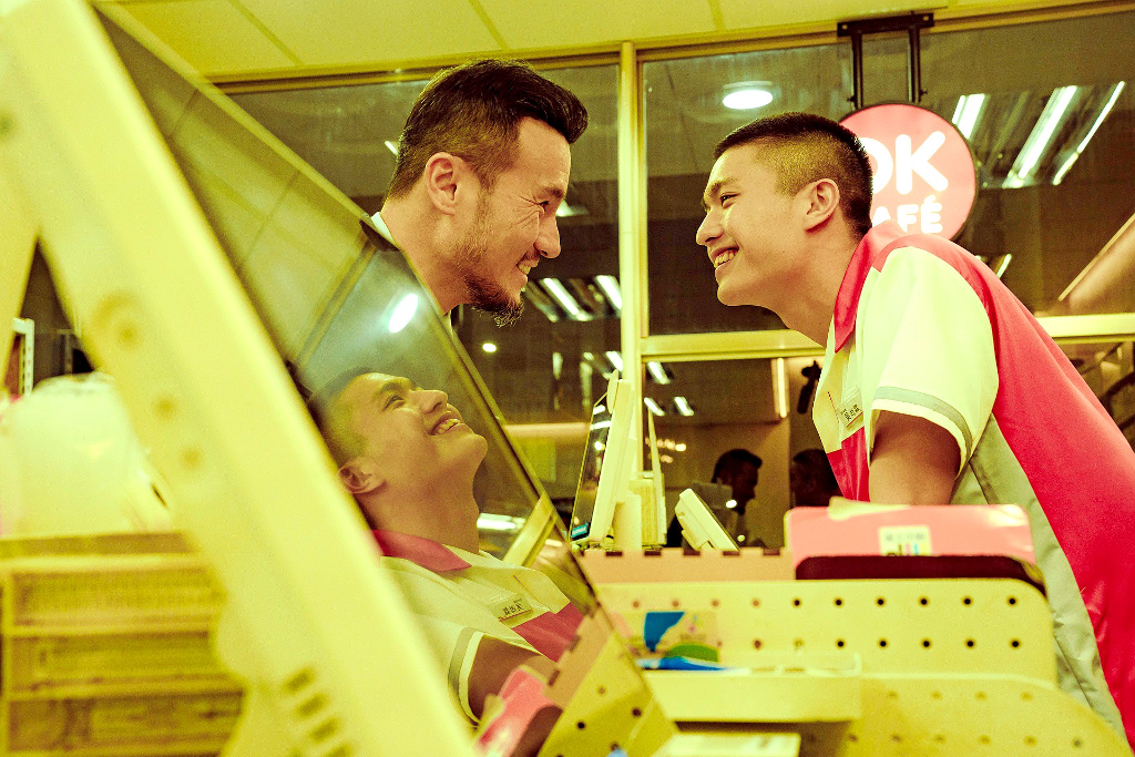 ▲ 王碩瀚(右)在新片《(真)新的一天》扮演陽光超商男孩,笑容電暈大叔李銘忠。(圖:海鵬影業)