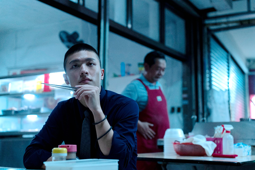 ▲ 王碩瀚麵攤用餐對話反擊李銘忠「我就是想浪費時間才去工作」,精準帶出年輕世代的生命價值觀。(圖:海鵬影業)