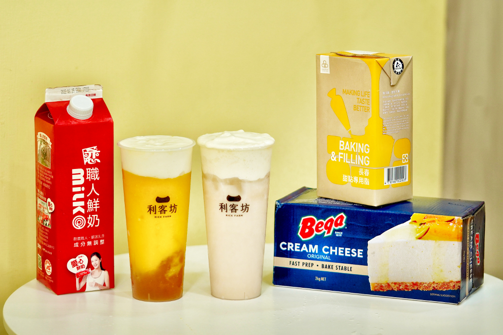 搭配「開元長春黃打發專用脂」及「蓓格奶油起司」的特製芝士奶蓋