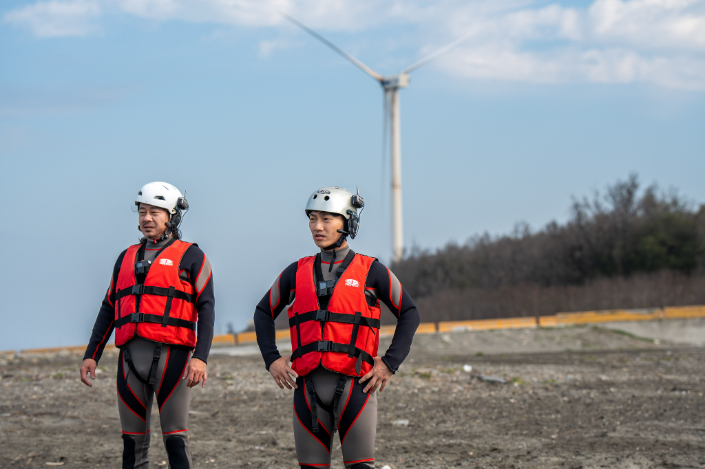 ▲ 乱彈阿翔、蔡昌憲體驗風翼板。(圖:東森)