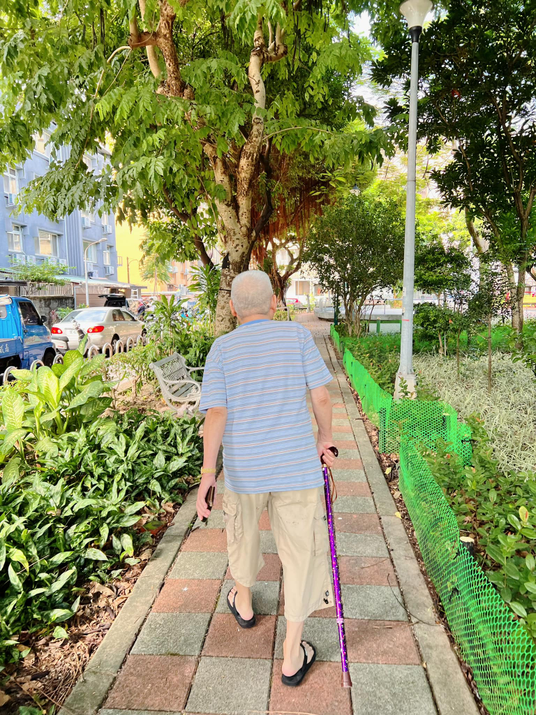 出院那天,問他需不需要輪椅?他說不用,但看他拿著拐杖走路的背影,八十三歲的他已經比六年前母親離世時蒼老、孱弱許多。