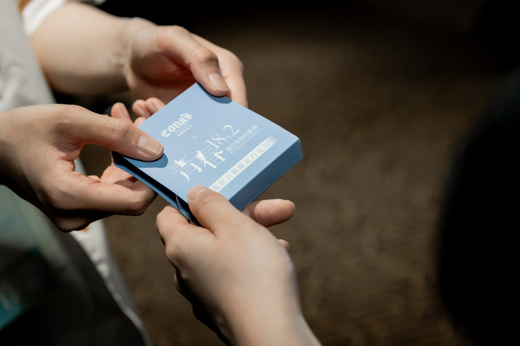 ▲ 《青春18x2 通往有你的旅程》特映會搭配獲得多次巧克力國際賽事金牌,有愛情的地方就有Cona's,做為青春約定的合作商家,陪伴 Jimmy 踏上追溯初戀的旅程。(圖:翻滾吧男孩電影有限公司)