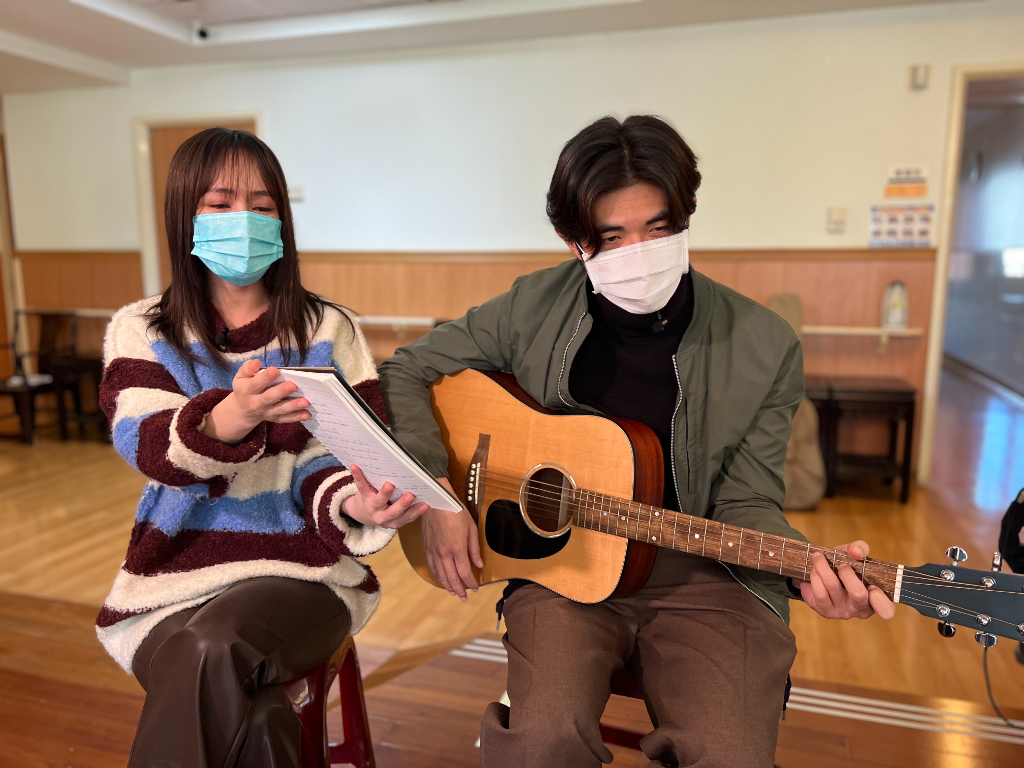梁正群除了精油按摩之外,還自備吉他自彈自唱兩首歌,一開始覺得一個人唱很孤單害怕,還好黃瀞怡(小薰)幫忙拿譜也陪著一起唱舒緩情緒。梁正群說演唱當下真的不知道我在幹嘛,事後聽說大家蠻喜歡,甚至還有家屬跟著一起唱,就覺得今天任務達成了。黃瀞怡(小薰)說來到心蓮病房凝聚力還蠻強的,第二首英文歌大家還一起唱,蠻感動的。