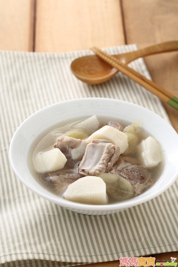 2在鍋中加入排骨、山藥塊和薑片,加入適量清水,煮至熟軟後,以少許鹽巴(也可不加)調味即成。