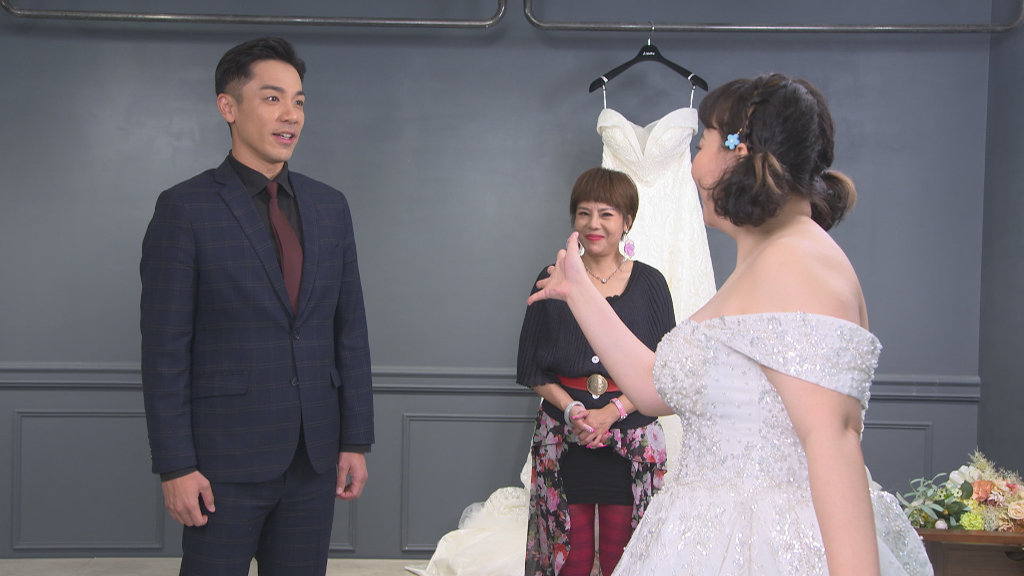 ▲ 楊皓崴、宮美樂、錦雯去試婚紗,笑料百出。(圖:民視)