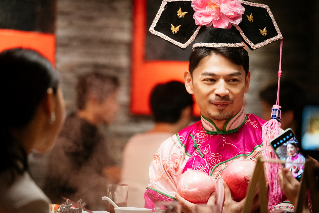 HBO亞洲原創製作影集《何百芮的地獄毒白》上週六播出最新兩集,劇情上演到郭書瑤飾演的「何百芮」因為男友張睿家劈腿上司姚以緹憤而離職,信心和事業都遭受到雙重打擊的她,開始嘗試新的興趣,試圖找回生活重心。雖然在網路上罵前男友一炮而紅,躍身為「地獄系毒舌網紅」的她,無法忍受自己失戀又失業,也同時開始使用交友軟體和面試找工作的忙碌生活,重返戀愛市場。和阿Ken嘔氣許久的郭書瑤,還逼迫阿Ken穿上古代格格裝,辣鍋小夥伴總算重修舊好。聊到這場戲阿Ken倍感害羞,原因竟是:「我不習慣沒有化妝就扮女裝!」原來他過去演短劇扮女裝已是家常便飯,只是他都會講究地刮鬍子、貼上假睫毛,這次為了逗樂郭書瑤挑戰全素顏扮裝,反倒讓他有種羞怯感更貼近角色心境。