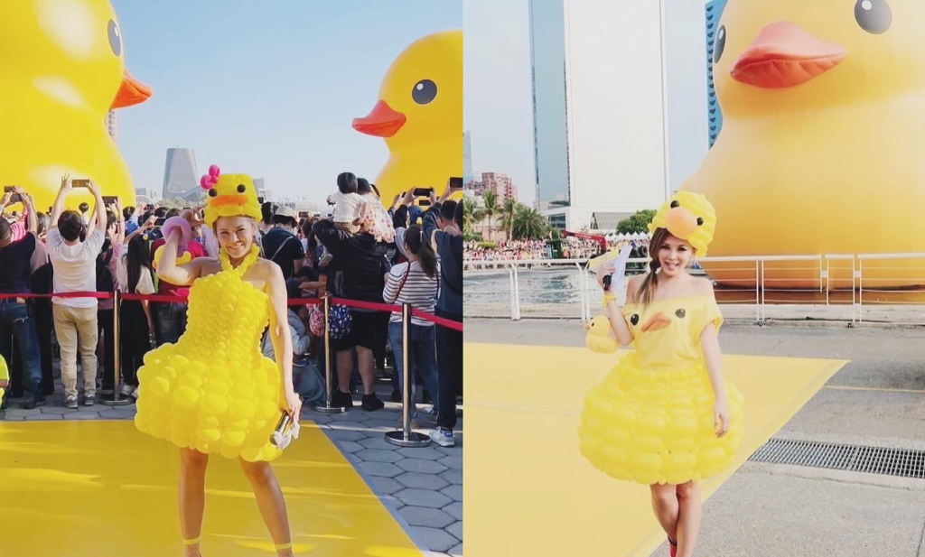 睽違十年再度來台的黃色小鴨於高雄愛河旁再度掀起一股炫風,更吸引高達900萬的觀光人潮,十年前後圓圓都受邀擔任活動主持,圓圓一樣換上跟十年前一樣的小鴨氣球裝,模樣逗趣可愛!她更自己將十年前後對比照組圖對照並自豪表示一樣漂亮,並表示時間飛逝沒想到十年就這樣過去,而圓圓依舊在舞台上展現對於工作滿滿的熱情。