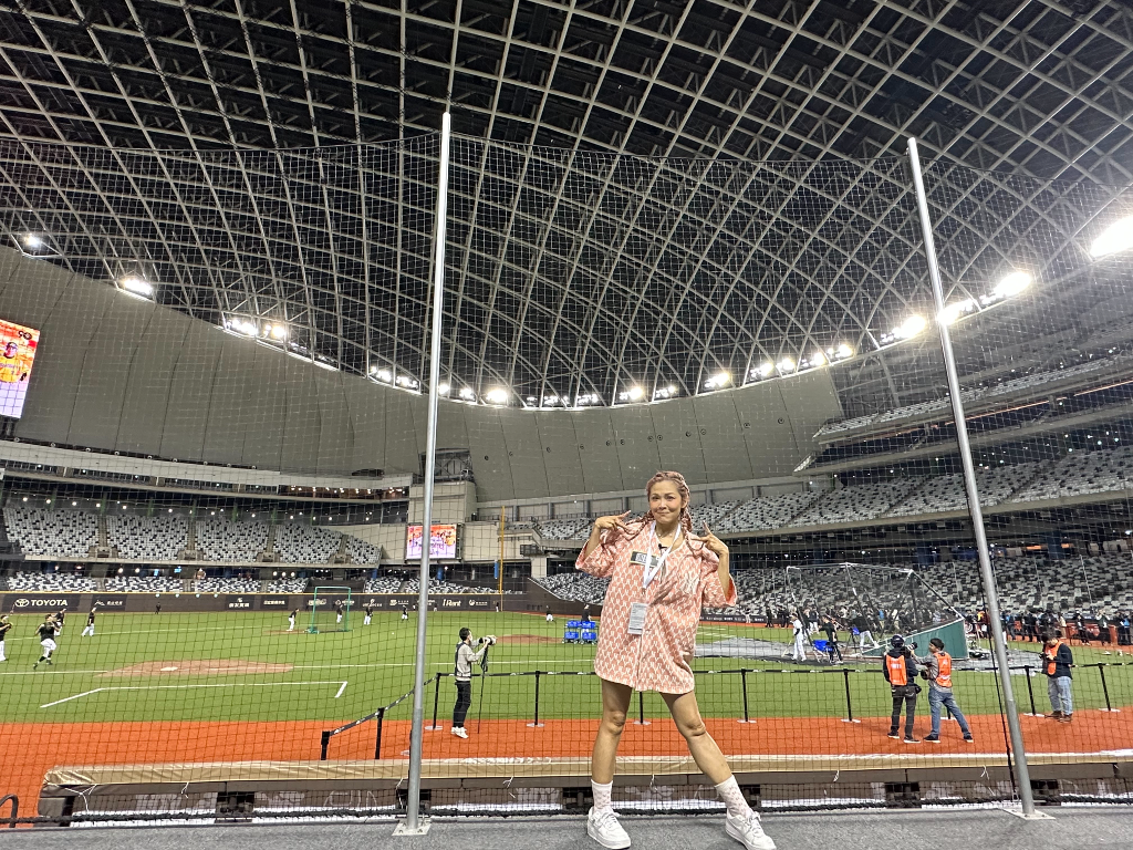 上個週末剛啟用的台北大巨蛋舉辦了球迷眾所矚目的讀賣巨人90週年來台交流賽,與中職樂天桃猿隊一同比賽切磋球技,而主持過許多運動相關活動的圓圓也受邀擔任本次球賽的中場主持,讓她首次踏上台北大巨蛋的紅土,也是首位在這個場地主持的藝人!圓圓表示看到現場超過三萬人的吶喊與加油聲圍繞著她,即便是她這樣已經身經百戰的主持老手當下還是感到內心中的主持魂熊熊燃燒而且熱血沸騰。