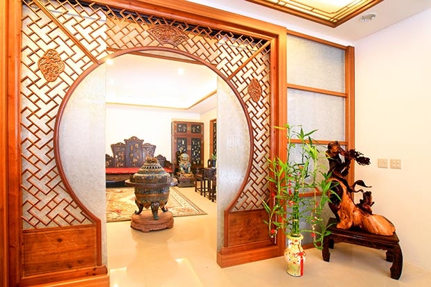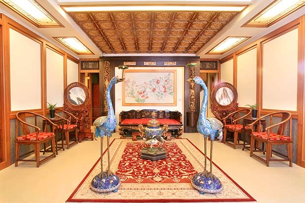 2.【圖說】中式風格挑高門廳內,由一對景泰藍丹頂鶴鎮守,迎賓氣勢十足。