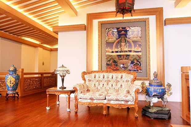 3.【圖說】講究色彩的唐卡,以木框裝裱於牆面,兼具藝術性與祥和瑞氣。