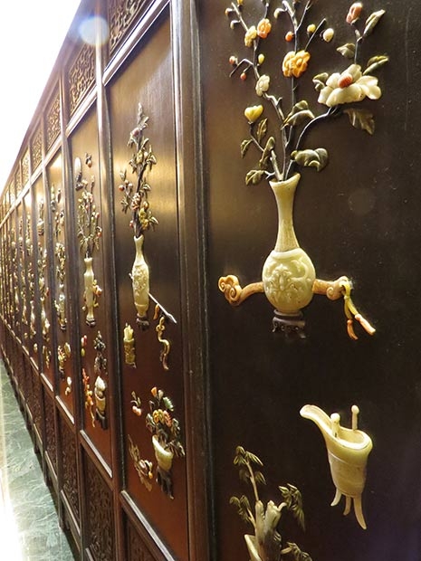 4.【圖說】由繽紛玉石鑲嵌而成的12幅屏風,展現了中國夏商時期延續下來的百寶嵌工藝之美。