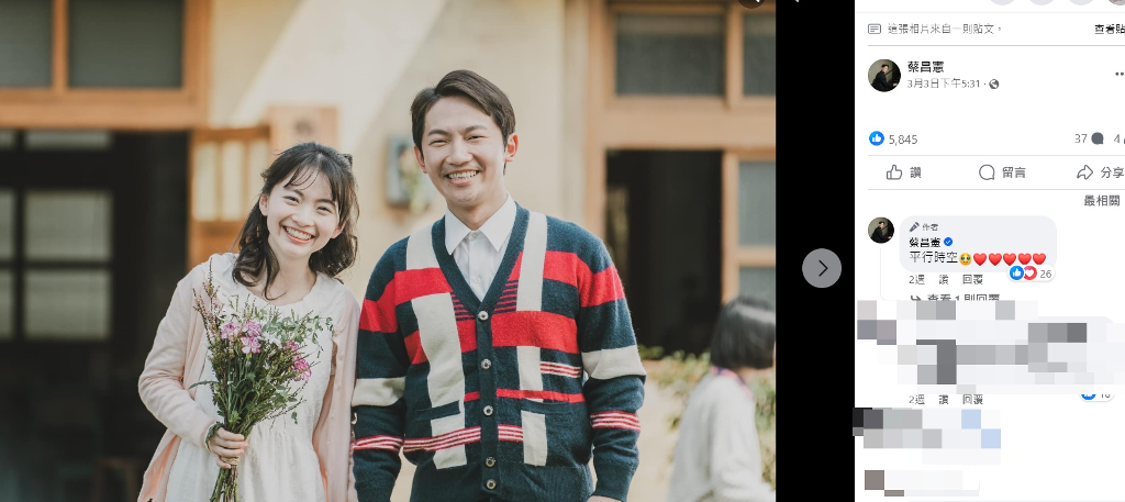 ▲ 蔡昌憲與喬湲媛繼《牛車來去》後再次飾演夫妻,同為獅子座個性非常合。(圖:翻攝 蔡昌憲臉書)