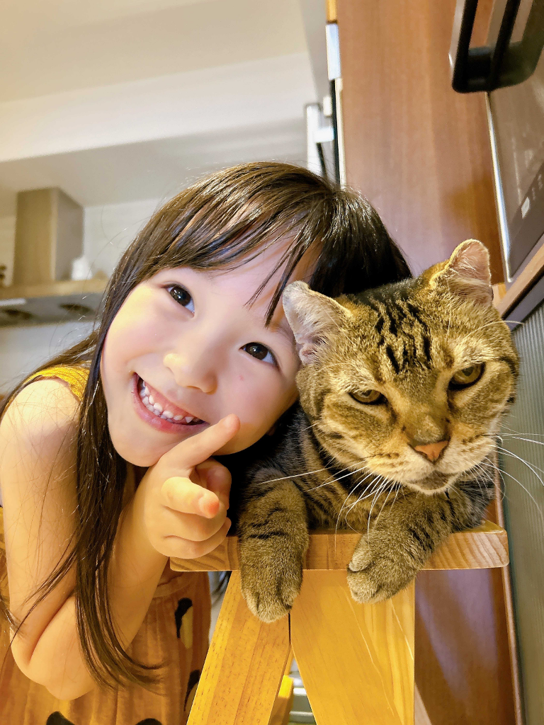 ▲ 阿布小女兒「朵朵」與貓兒子「哥哥」從小一起玩到大。(圖:夢田影像)
