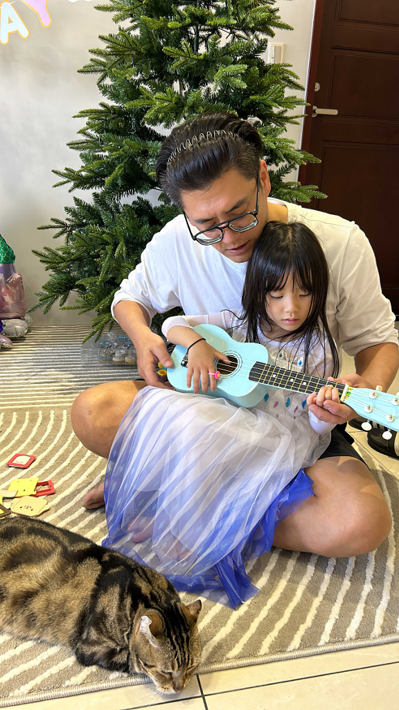 ▲ 阿布與小女兒「朵朵」以及貓兒子「哥哥」。(圖:夢田影像)