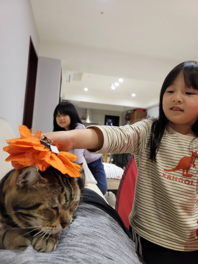▲ 阿布領養貓9年,兩個女兒跟貓一起陪伴長大,前為小女兒朵朵,後為大女兒薰薰。(圖:夢田影像)
