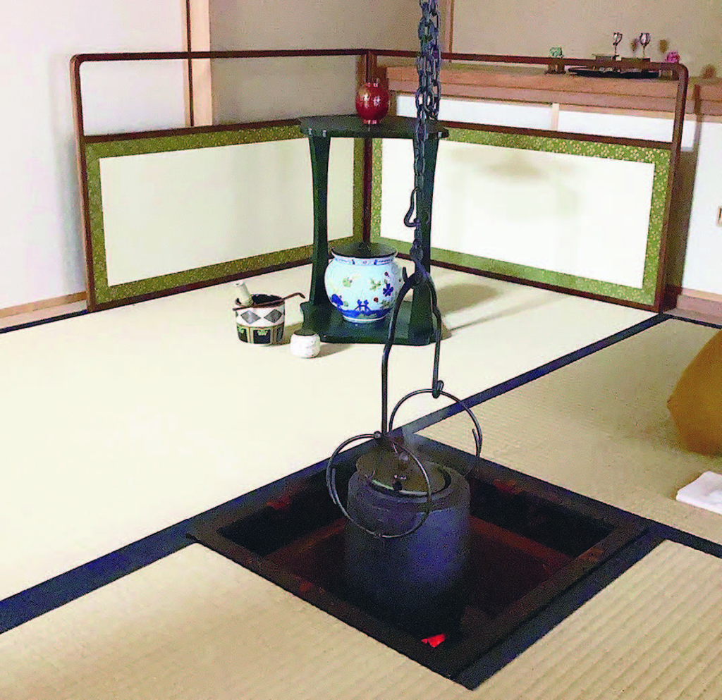 三月的茶會上,這一天,茶室布置了一只搖曳的鑄鐵吊鍋,來讓人感受春天的風情。