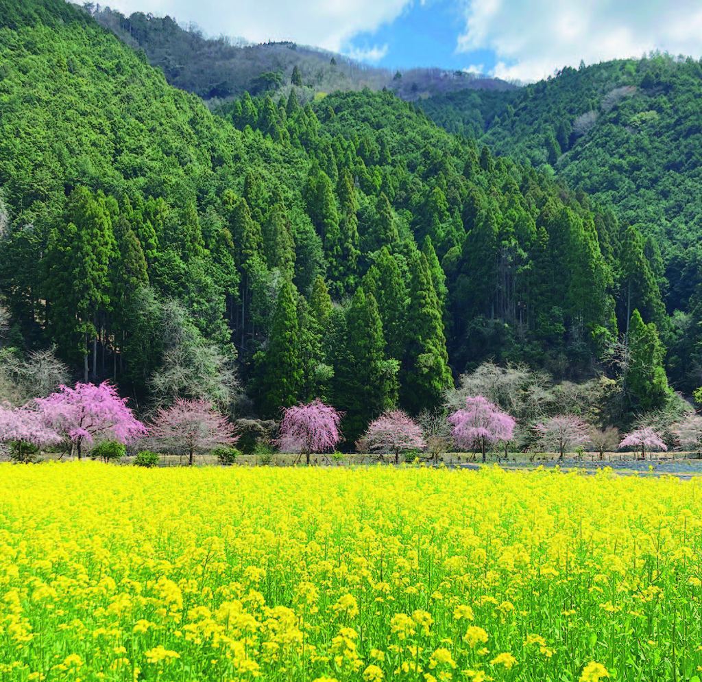 雖然管理竹林著實麻煩,但有春筍,竹子也能製成田地的支架,甚至連落葉都能當作堆肥。而街上成排古厝的石牆,則種有茶樹或金木犀,茶花與新芽皆可食用,還能遮蔽外部視線。體會這種美好循環的家宅構造後,每天都開心地摸索著全新的鄉村生活。比如我偶然發現「土井志葉漬本舖大原本店」的田地「志季彩之道」,是欣賞櫻花和油菜花的景點;古知谷的阿彌陀寺,四季皆綻放不同的山花野草,絕對值得一遊。今後我也想珍惜這片生生不息、令人自豪的原野景致。