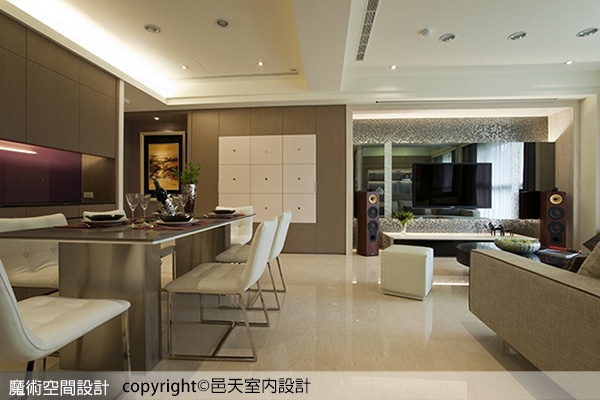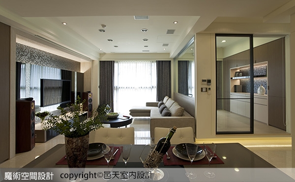 (2)【圖說】客廳主牆以鏡面、馬賽克為主,挹注前衛時尚的生活感受。