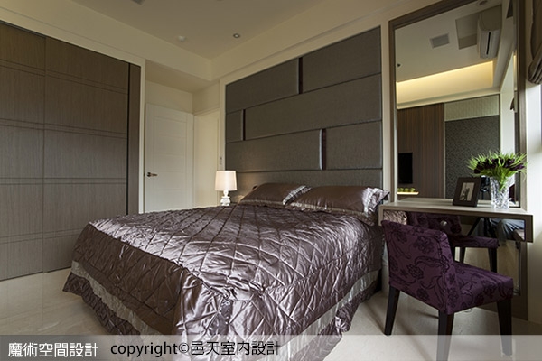 (8)【圖說】陳建泰、鄭珊怡設計師針對主臥空間以皮革裱布作為主牆造型,引申優雅質感。