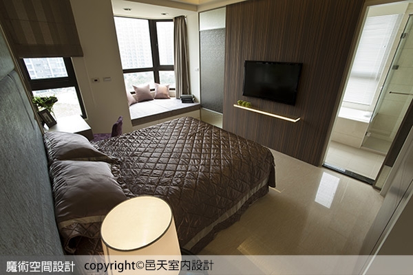 (9)【圖說】於主臥TV主牆規劃對稱語彙,與主臥衛浴相隔,給予舒適的休憩質蘊。