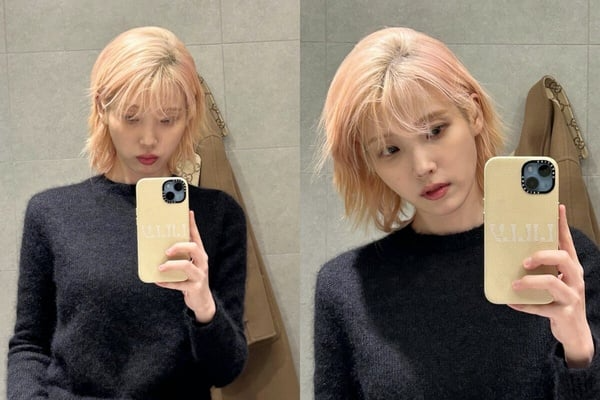 IU在新專輯《The Winning》中也換上Pantone公開的2024流行色「柔和桃」,暖色調的蜜桃色更加顯白、亞洲膚色也好駕馭,剛染完後顏色飽和度高,在室內光源下還帶些霧面質感,增加輕盈又顯嫩的氛圍,真的太美了!