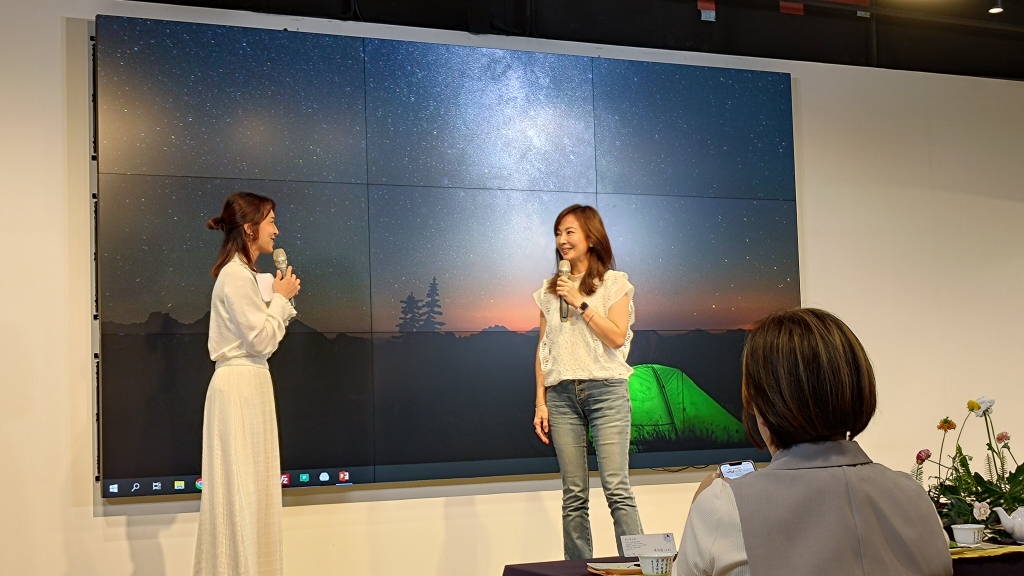 (郭昱晴(右)參加食育活動記者會,主持人陳瑋薇(左))