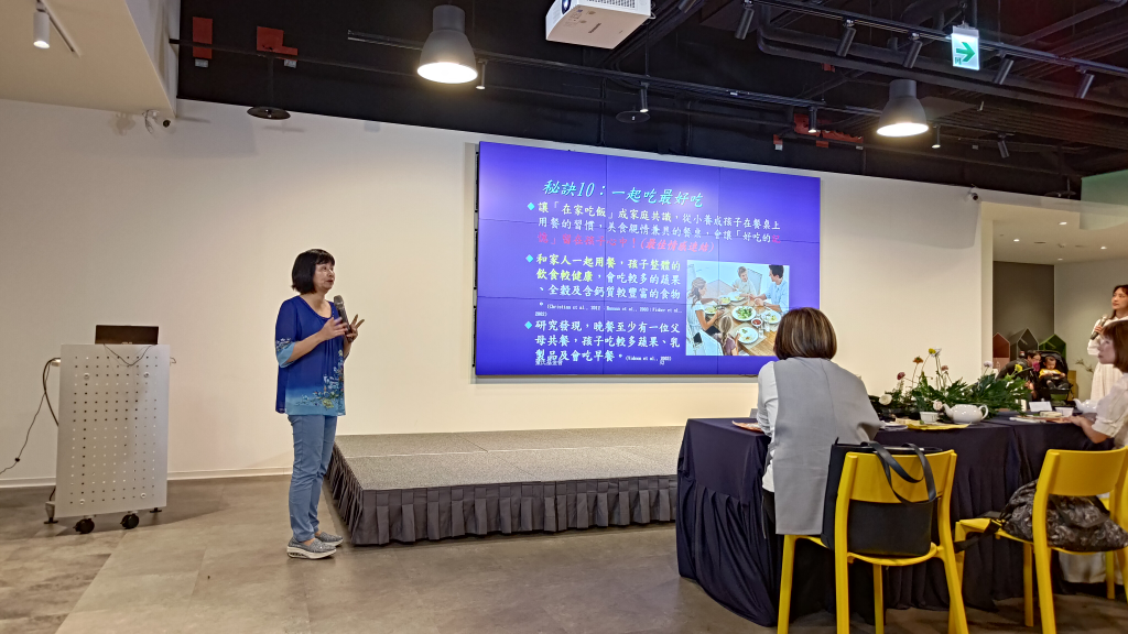 董氏基金會食品營養中心主任許惠玉分享,讓孩子參與烹飪的過程,看到食物的原貌,同時教孩子不要玩食物,就能開始懂得不浪費,尤其看到擺盤之後,讓孩子有成就感,就會想吃。許惠玉也說調查也發現「一起吃最好吃」養成在餐桌吃飯的習慣,但提醒在餐桌上不要談嚴肅的話題影響食慾,心情好才會有好味口。