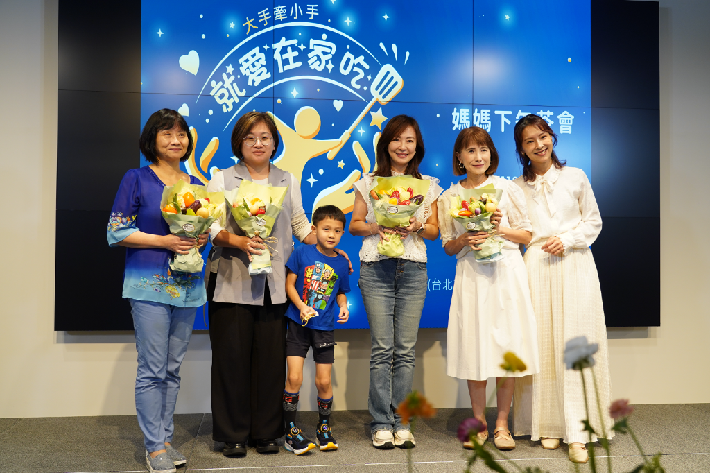 (食育從家庭做起分享者(左至右):董氏基金會食品營養中心主任許惠玉、立委陳培瑜、郭昱晴、部落客番紅花、主持人陳瑋薇)