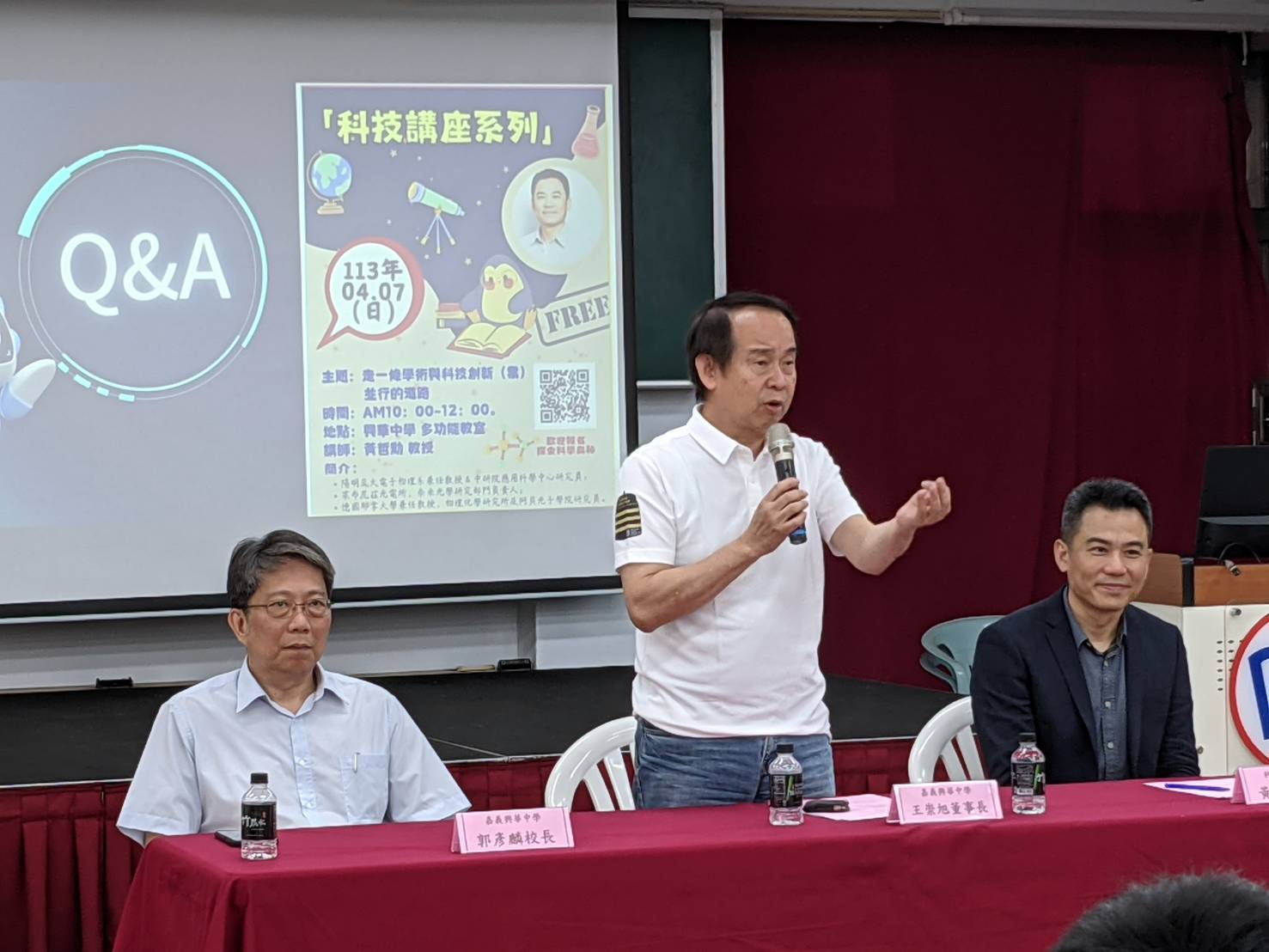 〔News586/記者吳玉芬報導〕根據國家產業發展委員會預估,未來科技產業人才每年有6萬人力缺口,各級學校教育需要積極培養相關人才以填補這巨大的職業缺口,嘉義市興華中學則早已規劃相關講座與課程,助學生醫藥與科技雙軌並進,並於4/7日辦理「走一條學術與科技創新並行的道路」科技講座,吸引滿場的學生與家長熱情參與。