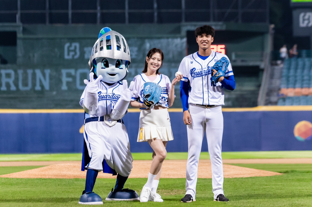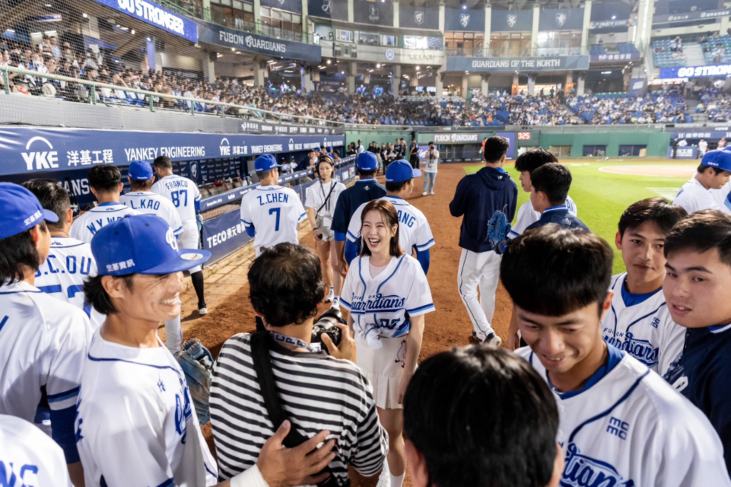 ▲ 劉品言一改《莎莉》中農婦造型穿上棒球球衣,受邀為富邦悍將擔任開球嘉賓。(圖:伯樂影業股份有限公司)