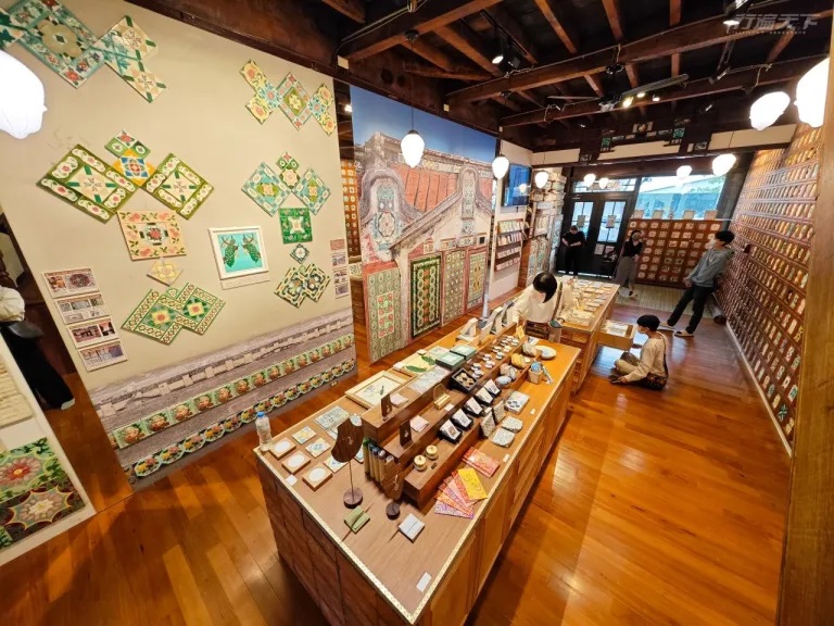 現在,老建築成為那些被搶救回來的上千塊花磚的家,目前展出1500片花磚,有來自歐洲、日本,更有數十年來從台灣各地搶救的台灣花磚。透過定時的免費導覽可了解,歐洲花磚強調寫意與立體,日本花磚則可多見花卉,甚至有富士山,而到台灣後,花紋更帶有吉祥寓意,甚至連瓜果雕刻都是複數,將滿滿祝福寓意包含其中。館方笑著說,由於當年花磚很貴,許多富貴人家都會將花磚貼在山牆、屋脊等房子最顯眼處,以彰顯自身財富。旅客也可透過簡單彩繪花磚DIY,設計出屬於自己的色彩花磚。