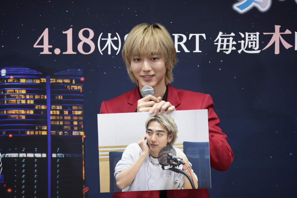 記者會主持人邀請演員們分享自己凌晨1點在做什麼的私人照片。駒木根葵汰分享自己凌晨1點正在電台錄音上班時對著麥克風放送迷人嗓音的工作照;新原泰佑也因凌晨1點通常正躺在床上瘋狂打手遊,大膽釋出難得的床照引人遐想。