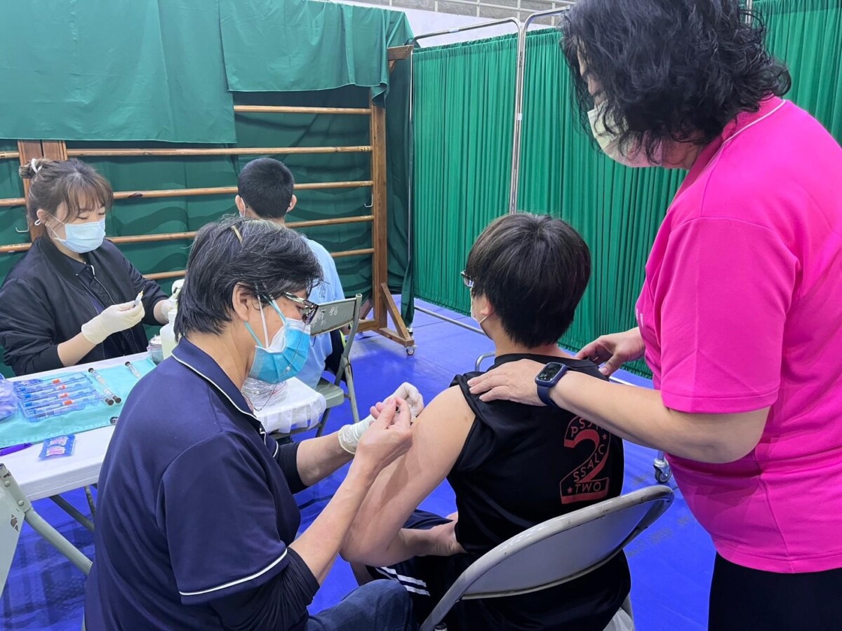 I【記者 劉芳妃/嘉義市 報導】嘉義市113年國中生人類乳突病毒(HPV)疫苗校園接種服務開跑,首(19)日嘉義市政府衛生局安排台中榮總嘉義分院及衛生福利部嘉義醫院進駐民生國中、北興國中及興華中學校園為國中二年級生接種疫苗。設籍嘉義市非就讀嘉義市學校的國中生可至合約診所接種,113年度預計服務5,000多名國中生公費接種人類乳突病毒(HPV)疫苗,降低未來染病風險,守護青年學子健康。