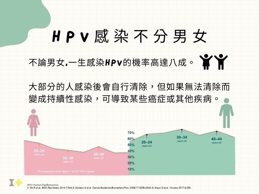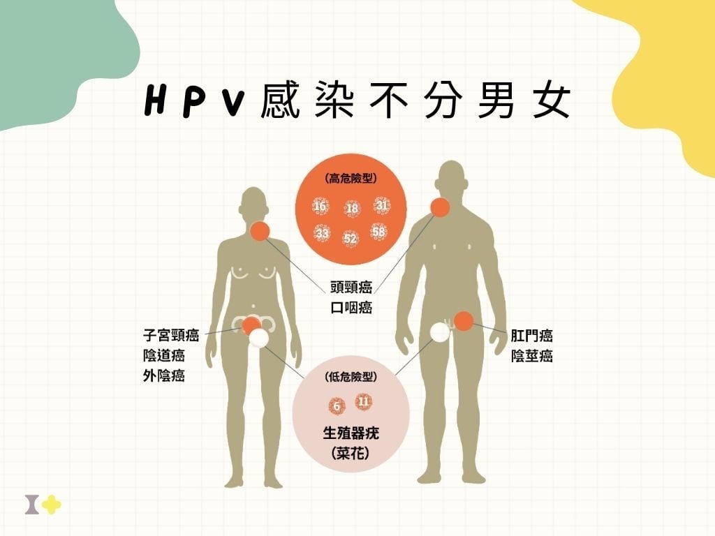 人類乳突病毒(HPV)是一種DNA病毒,主要感染人體的表皮與黏膜組織,不論男女皆有八成的機率被感染。臨床研究證實持續性感染人類乳突病毒(HPV)引發的相關癌症,在女性可能引發子宮頸癌、陰道癌、外陰癌等,在男性則為頭頸癌、肛門癌及復發率極高的生殖器疣(菜花)。接種HPV疫苗能大幅降低未來罹患相關癌症機會。