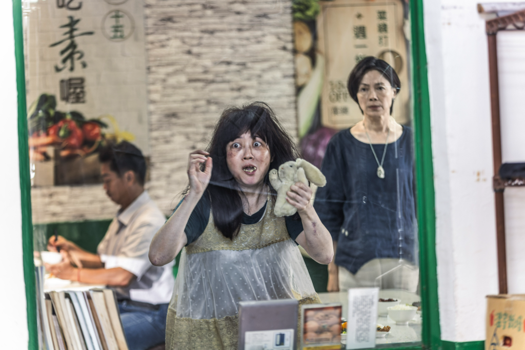 (劉曉憶飾演貓母,嚴重精神障礙,柯淑勤(右)陪伴用餐)