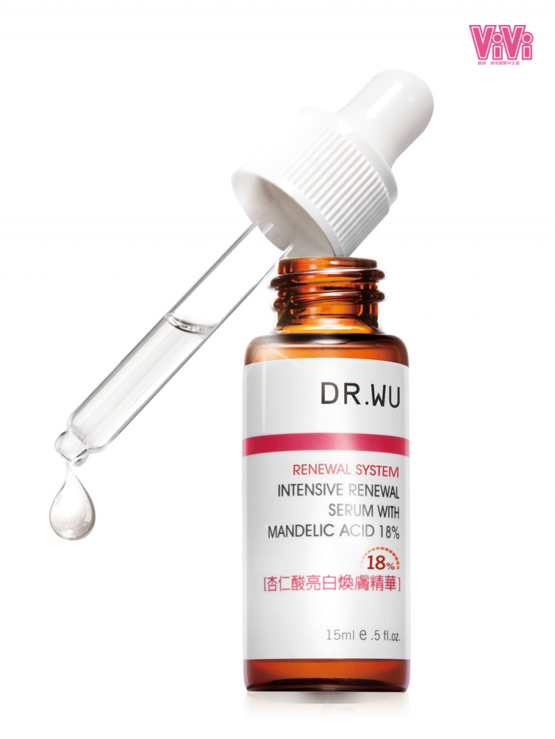 以18%的濃度改善閉鎖型粉刺、痘痘、毛孔粗大、膚色黯沉、斑點與皺紋等問題,使膚質光滑緊緻。 杏仁酸亮白煥膚精華18% 15ml NT.800/DR.WU