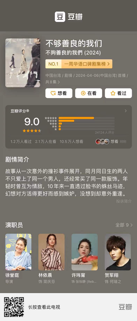 ▲ 《不夠善良的我們》播出後造成話題,衝上豆瓣評分9分的好成績。(圖:周子娛樂)