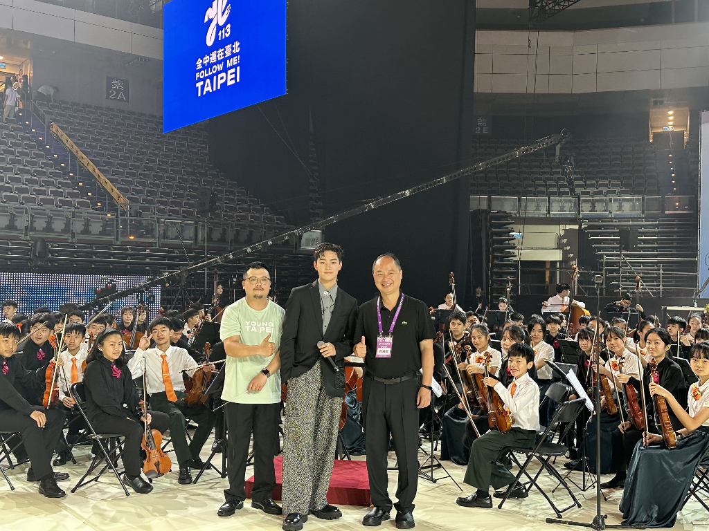 ▲ AcQUA源少年須弘道受邀全中運表演,與介壽國中、敦化國中的弦樂團合作演出。(照片提供:種子音樂)。(圖:種子音樂)