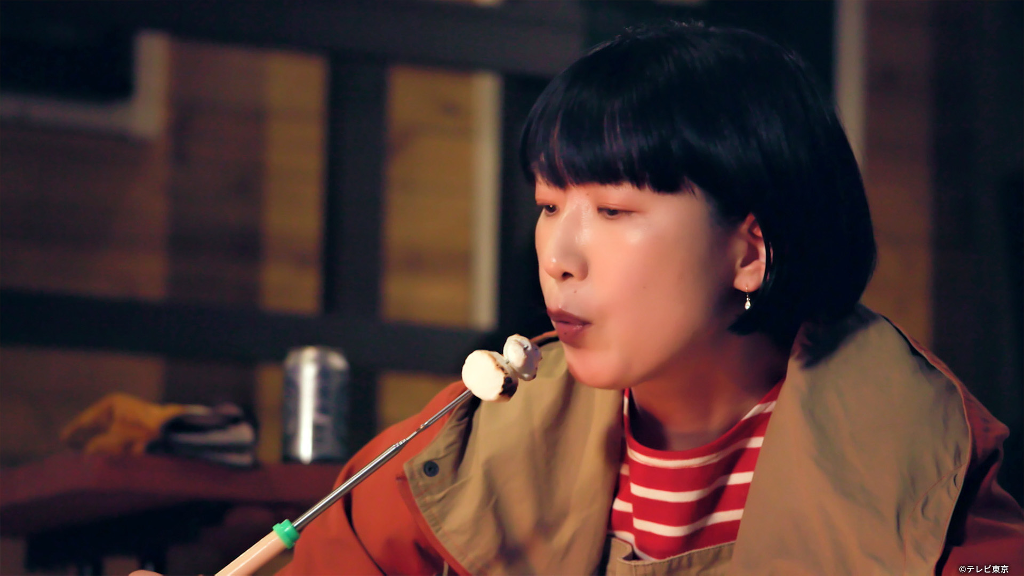 ▲ 江口德子在劇中挑戰「獨活」新境界,體驗一人篝火烤棉花糖。(圖:原創娛樂)