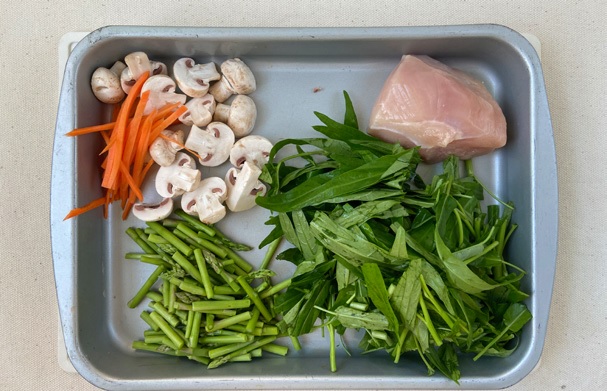 決定好所有菜單後,我會把當餐要煮的所有食材放在大的淺盤裡,讓烹煮順序一目了然,同時也提升下廚速度喔。