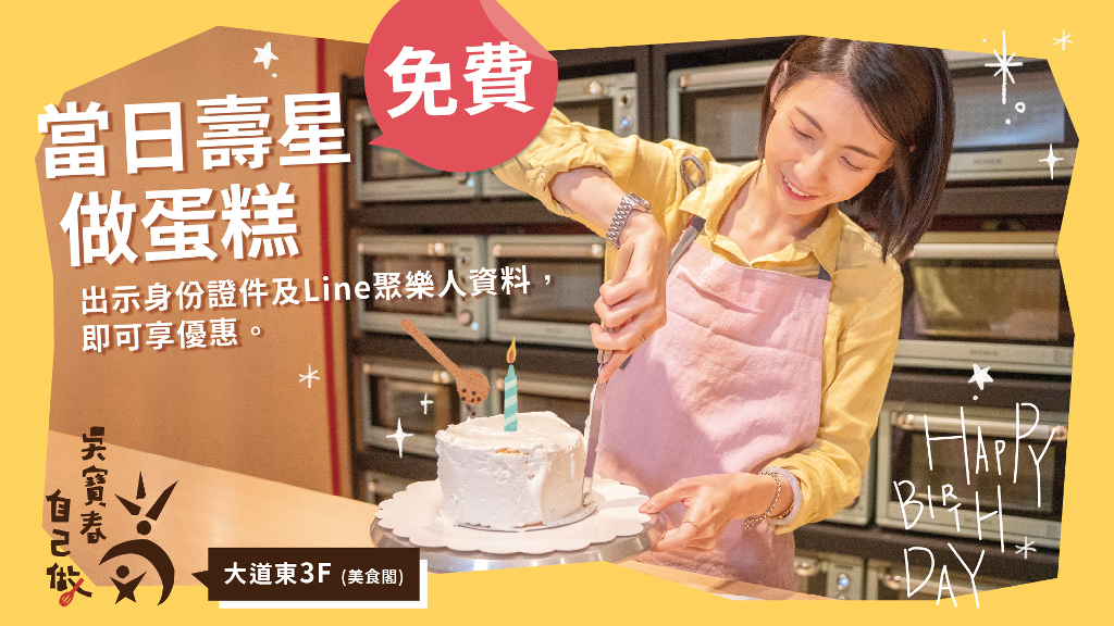 *壽星免費做蛋糕優惠方式:生日當天出示身分證件,並填寫LINE@聚樂人資料卡,即可享有「我的生日蛋糕」免費製作。