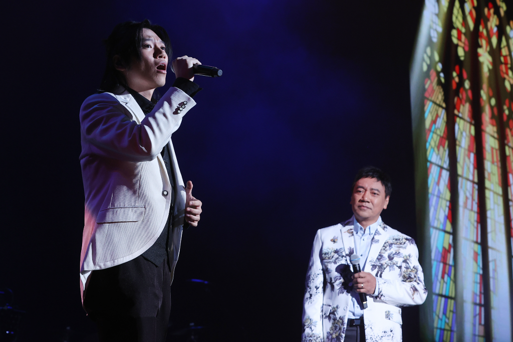▲ 施孝榮(右)、施少庸(左)父子檔同台飆歌。(圖:聯合數位文創)