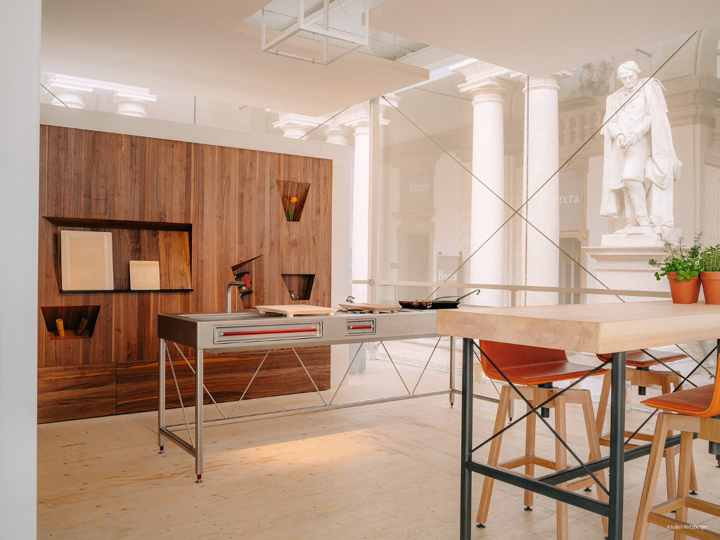 頂級廚具品牌bulthaup,在疫情過後的第一次亮相於米蘭設計周上,這一次選址在義大利藝術聖殿-布雷拉畫廊(Pinacoteca di Brera)舉辦品牌盛會,而一段簡單卻不簡單的Slogan,破題了bulthaup品牌2024的年度語言「There is no kitchen」,希望觸動人們對於空間的定義,更多的是表現品牌75年來的價值核心。
