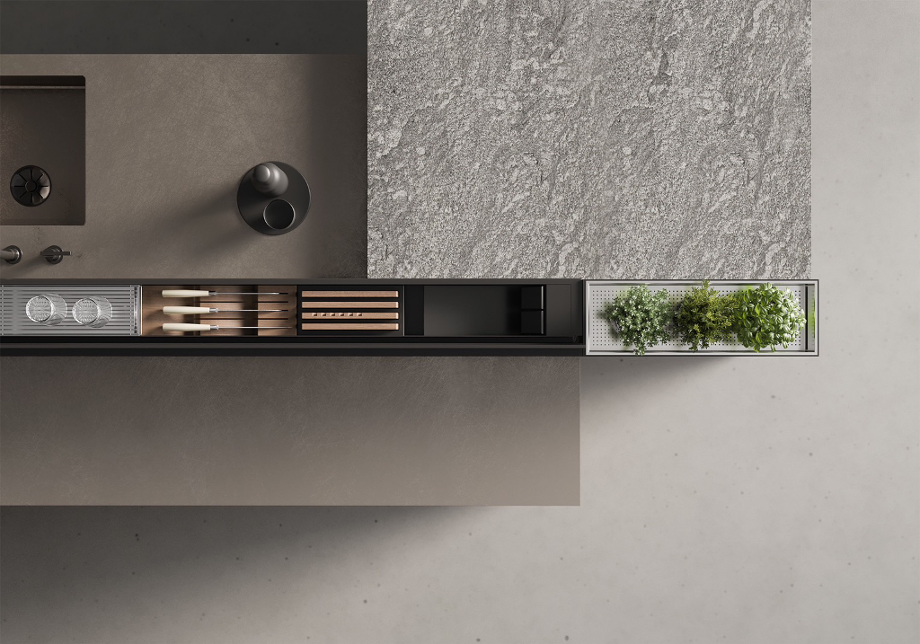 自80年代首創結合火點與水點的「獨立中島工作檯」,2024年全新推出kitchen workbench工作檯從火點到切菜區、水點都在一個平面的設計中完成,且整合爐台、洗手槽、與備料區等實用功能,檯面以不鏽鋼表現簡約洗鍊的風格。設計感應爐,另外額外設計抽拉式工作小桌,靈活式增加工作區域。