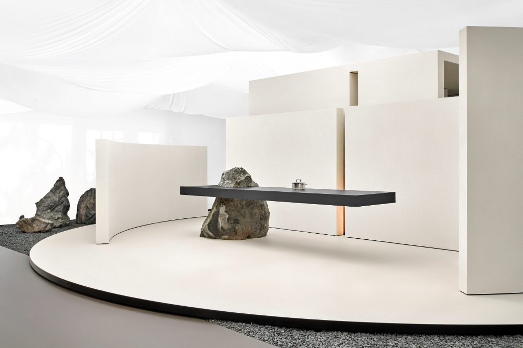2024米蘭設計週圓弧形的場館空間劃分為兩端相互連接卻概念相對的展區,分別代表著Gaggenau「現在」與「未來」的美妙平衡
